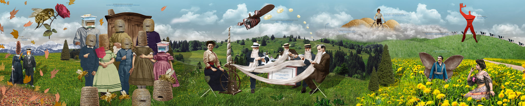 Désormais, grâce à «Quai 6 2/3, La Chaux-de-Fonds», le chef d'oeuvre absolu et monumental de l'Art Pive, la confusion n'est plus possible, ni l'anonymat envisageable. Si le génie local et régional s'affiche haut et fort dans le sous-voie sur près de 40 mètres, il jubile carrément des gencives et recto-verso dans les 16 mètres du puits de lumière de l'ascenseur gravitationnel multi-spires menant à l'extatique quartier sud. Et la dame à la montre contemplant les voyageurs du haut des ascenseurs nous invite malicieusement à prendre le temps d’apprécier le temps.